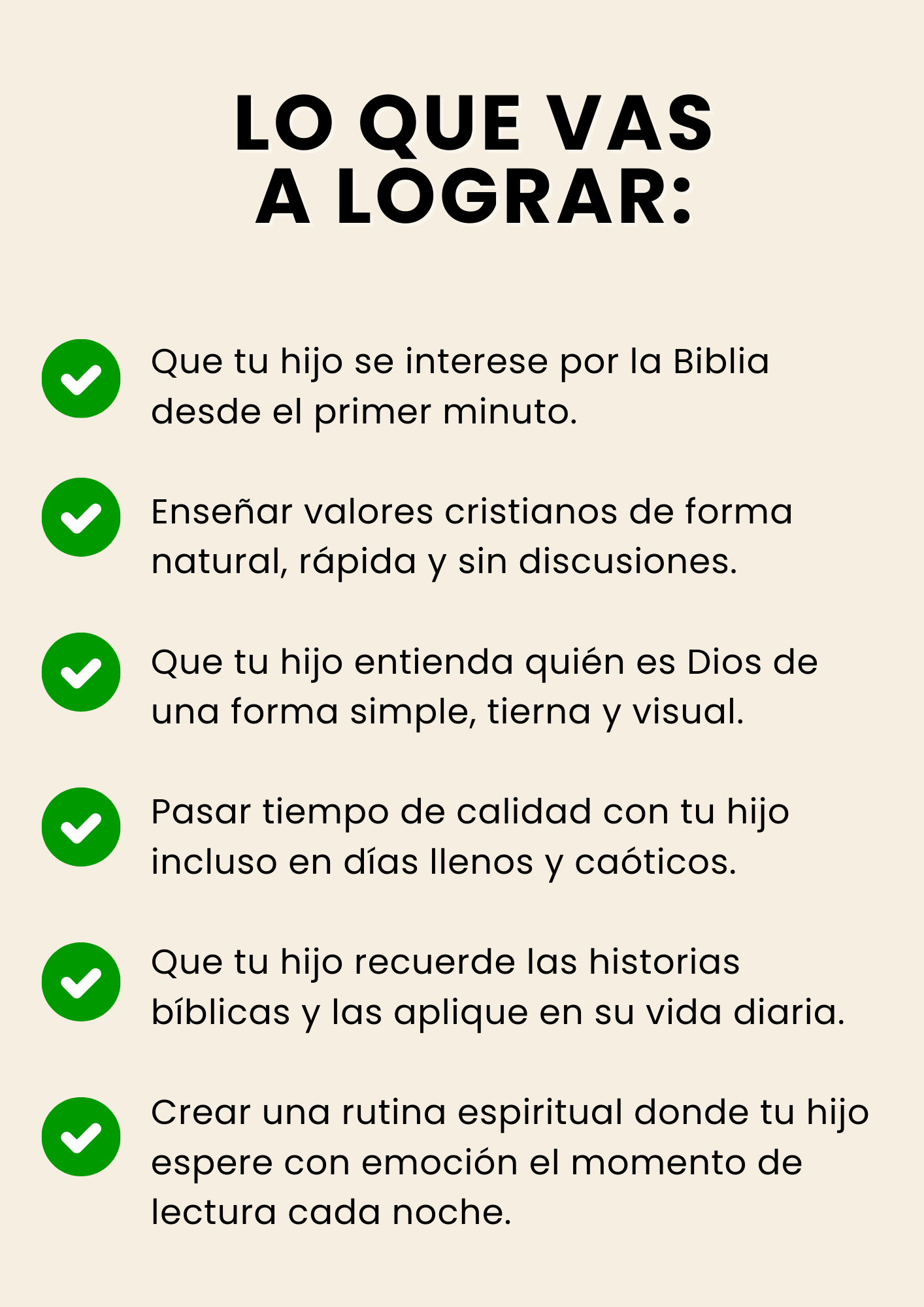 Incluye más de 40 historias bíblicas ilustradas, adaptadas especialmente para niños, con imágenes tiernas y claras que mantienen su atención desde la primera página.